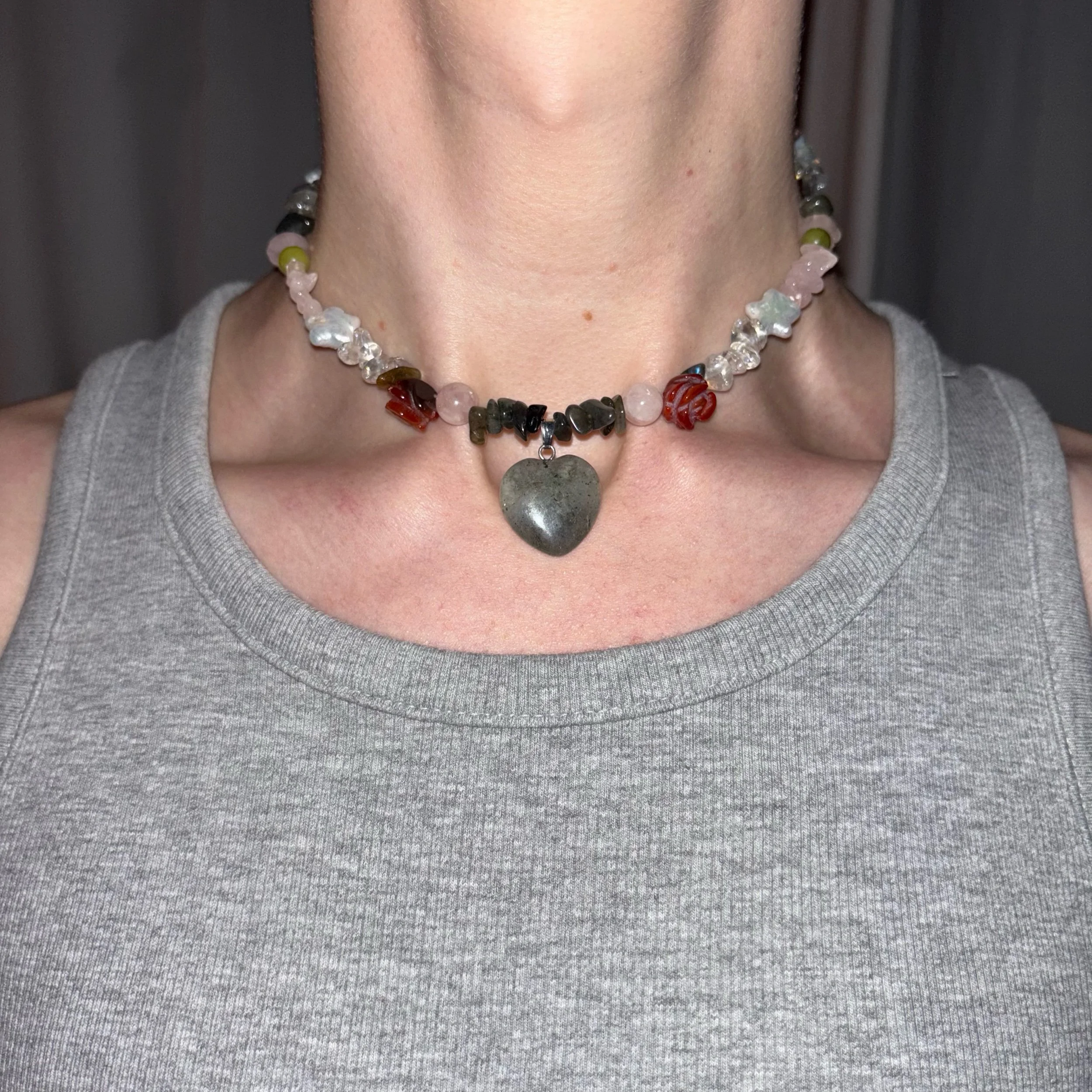 For those seeking adventure, fantasy and beautiful changes. For those who want to reclaim themselves as the main lead. For those whose minds have been clouded by too much realism; This necklace is for you. A warm mixture of carnelian, rose quartz, jade & labradorite invite you to find the inevitable magic in your day to day life much more effortlessly as well as helping you attract more romance, adventure & miracles.